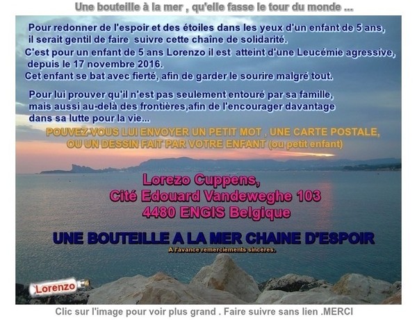 Merci de faire suivre cette chaine d'espoir pour cet enfant malade , sans ajouter de lien.